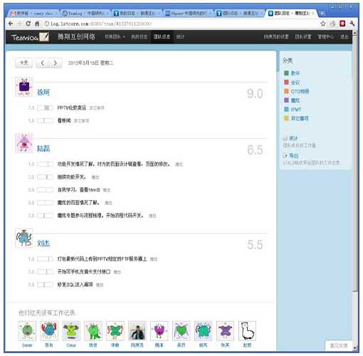 Teamlogs 提供记录导出成 .XLS 文件的功能,你可以用 Excel 这样的工具进行更详细的分析。